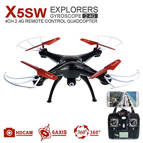 All images of CrazyFire® Syma X5SW RC Quadcopter, 4CH 2.4G 6-Axis Gyro Headless Drones Support Mobile Phone Apple IOS Android Wi-Fi Wifi Control FPV HD 2.0MP Camera 360-degree 3D Rolling Mode+2 Batteries (Black)
