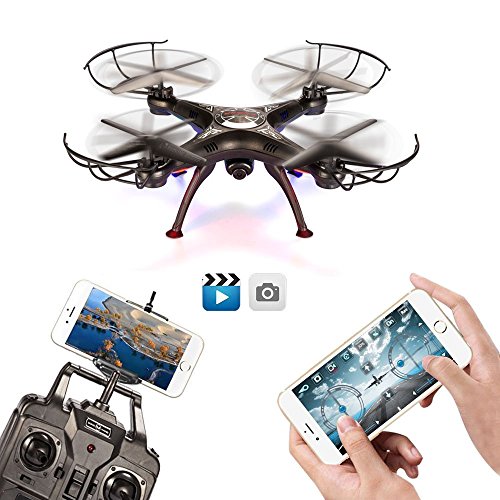 BABADIO 2 Remote Control Mode 4 Channel 2.4G 6-Axis Gyro RC Headless Quadcopter X5SW-1 Drone with Wifi Camera (FPV) for Real Time Video Transmission - Black