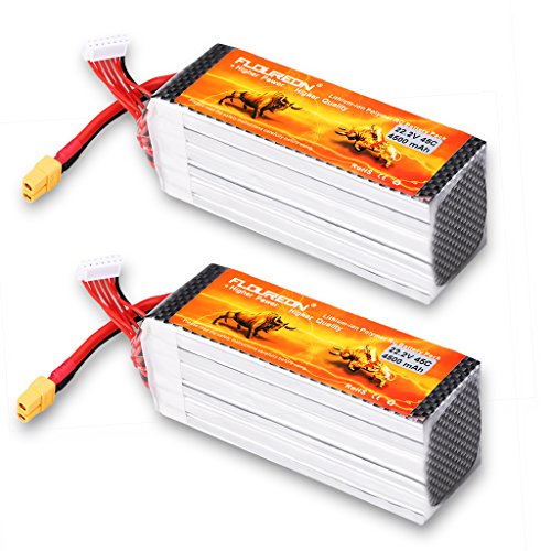Floureon 2Packs 6S 22.2V 4500mAh 45C Lipo Battery 5.27*1.68*2.15 inch for RC Quadcopter Airplane Helicopter Car Truck Boat Hobby (XT60 Plug)