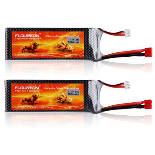 2 Packs Floureon 11.1V 5500mAh 35C Li-Polymer/Lipo Battery Packs RC Battery with Dean-Style T Connector for RC Airplane, RC Helicopter, RC Car/Truck, RC Boat